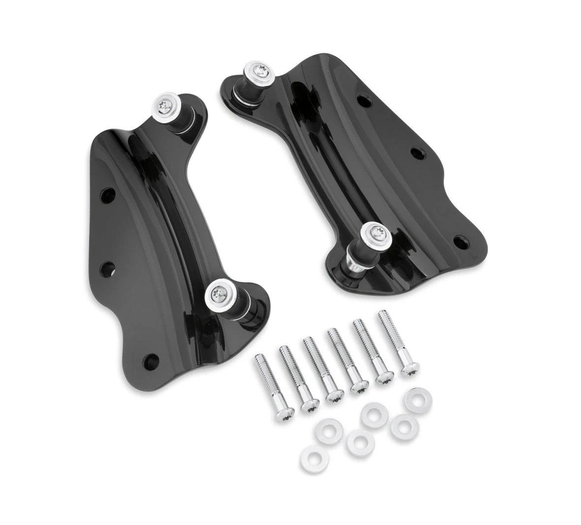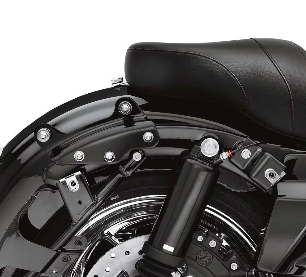 FLHRC models require separate purchase of Saddlebag Hinge Stop P/N 90580-09. Provides docking points to allow installation of Detachable Sissy Bar, Solo Luggage Rack, 2-Up Luggage Rack, Solo Tour-Pak Rack or 2-Up Tour-Pak Rack.