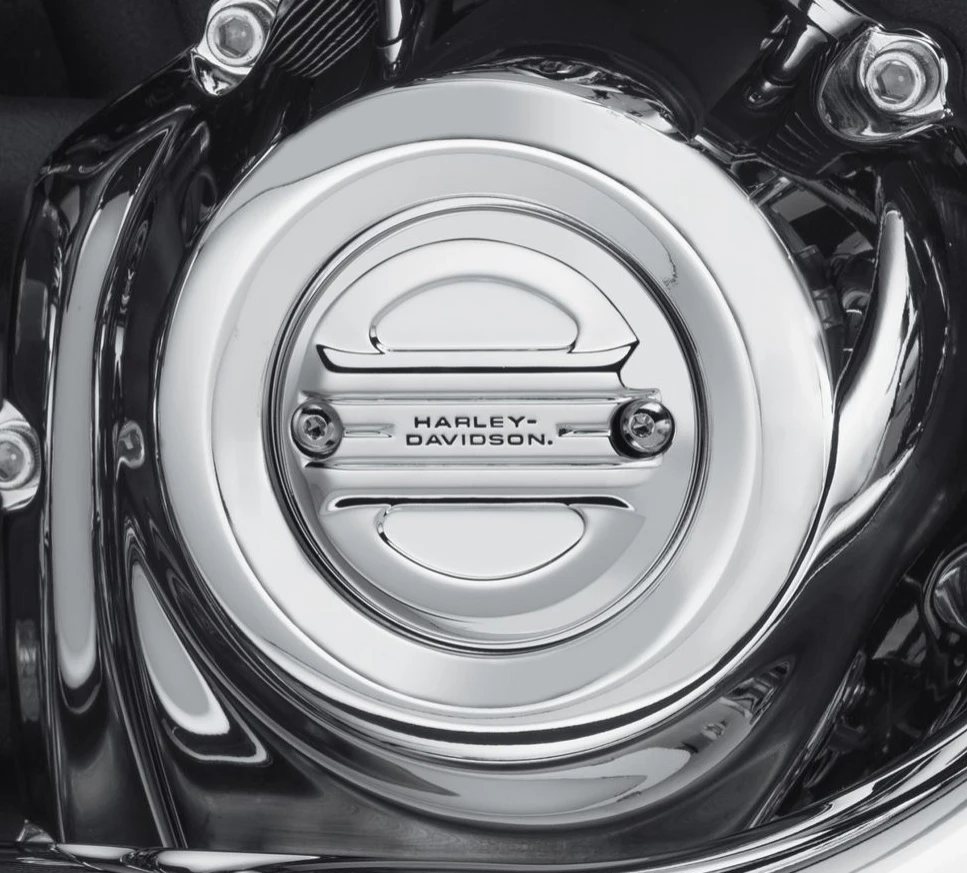 Shaped to cheat the wind. The polished and mirror-chromed Airflow Collection features a raised bridge with 3 laminar grooves that float over the recessed panels. The layered surfaces capture light and shadows, and frame the subtle black-filled Harley-Davidson signature.