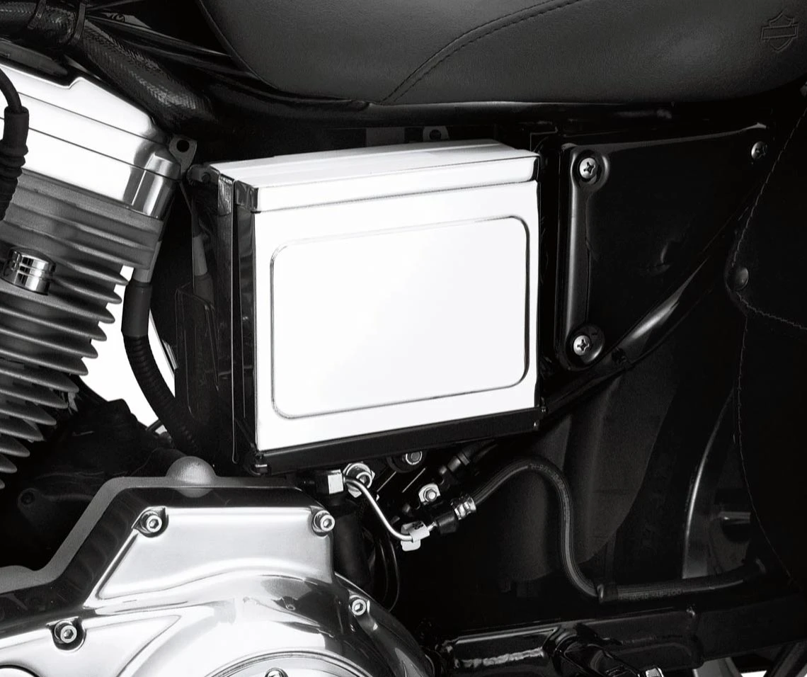 Fits Harley-Davidson ’97-’03 Sportster XL models and ’97-’05 Dyna models. Can be used in combination with Battery Top Cover P/N 66367-97 or 66368-97.