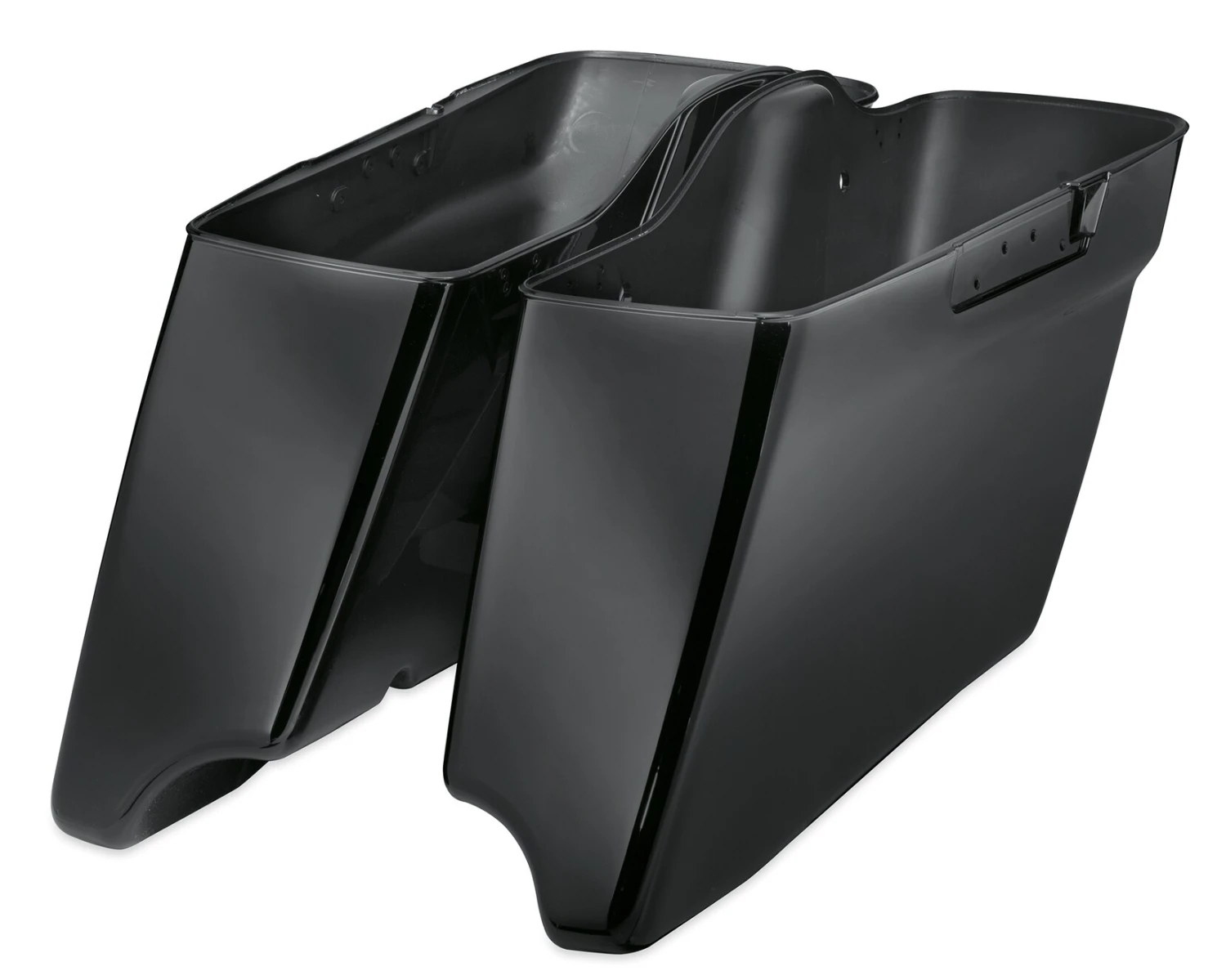 add the long low slammed look to your Touring bike without compromising the suspension travel and ride height. These Stretched Saddlebag Bottoms wrap around the exhaust to add visual length to the bike and hide the muffler bracket and hanger from view. Stretched Bottoms are predrilled to accept your existing saddlebag lids and latches. Simply attach the extended saddlebag bottom to your saddlebag lids with the included hardware and install on the bike like the original bags. NOTE: This product is a Paint to Order accessory. Please allow for an average of 5 weeks delivery for this item. No returns on painted parts.
