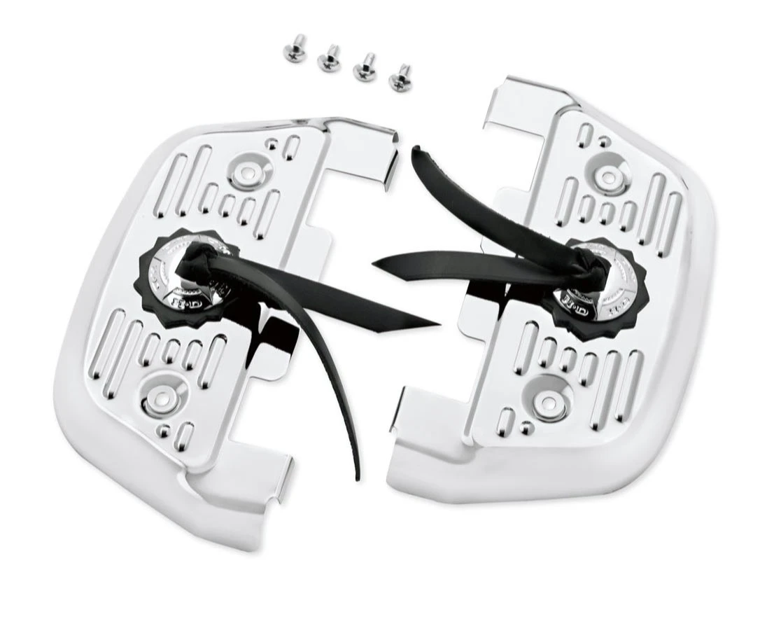 Fits Harley-Davidson Touring ’87-later, Softail FL ’86-17 & Dyna ’06-17 with traditional D-shaped aluminum passenger footboards