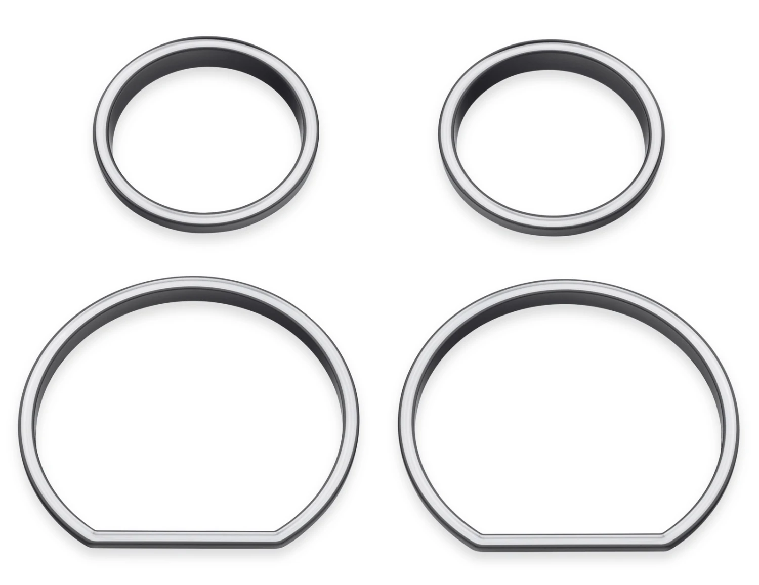 The perfect finishing touch. Defiance Collection Gauge Bezels add a custom detail to the place you constantly look your instrument cluster. Accented with deep grooves, these machined aluminum rings cover the factory gauge surround adding texture and visual interest to the dash.