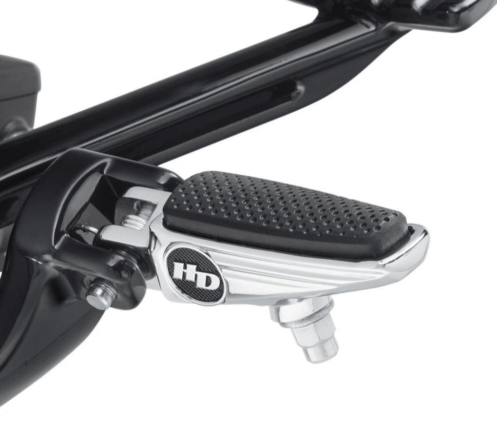 Dare to be bold. Dressed in luxurious chrome, this complete hand and foot control assortment raises the customization bar. Defined by sweeping curves and accented with deep longitudinal lines and a contemporary H-D logo, the Defiance Collection features rich textured black rubber traction surfaces set in a field of mirror chrome.