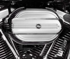 - Billet aluminum band with deep longitudinal lines and „H-D“ logo wraps the center section of the Ventilator Air Cleaner face plate for a contemporary look