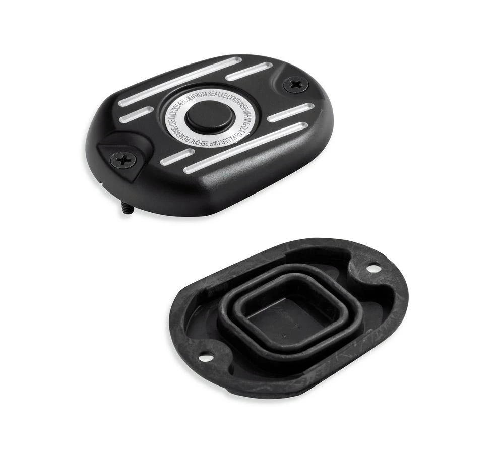 Fits Harley-Davidson ’07-later XL and XR models. Cover is a direct replacement for the Original Equipment master cylinder cover.