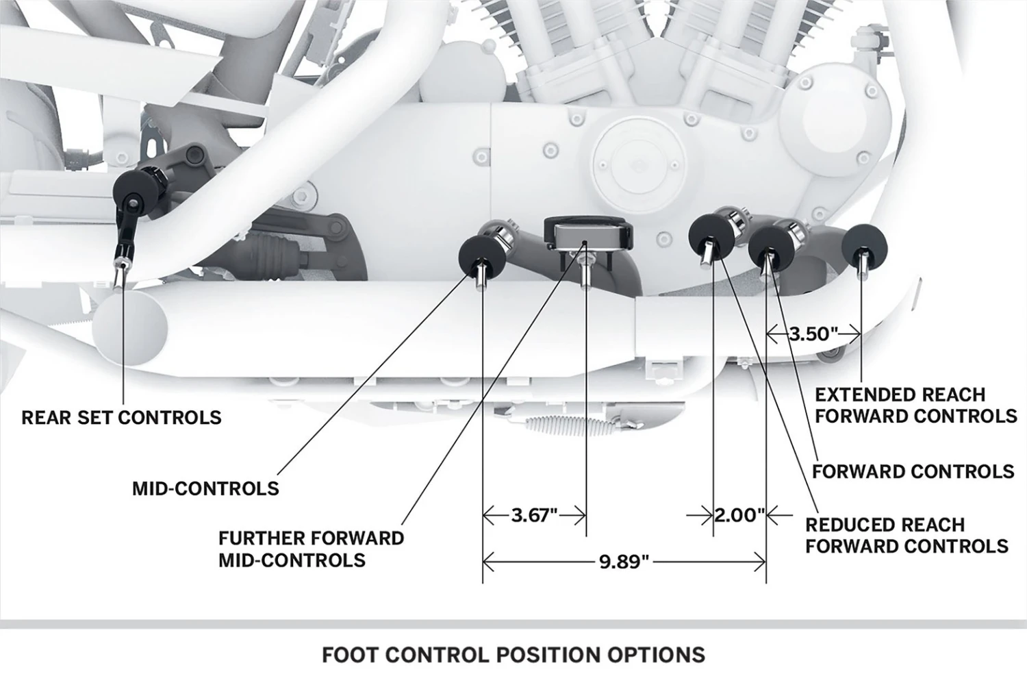 - Available in black, polished or brilliant chrome-plated finish, these forward controls add style and long range comfort