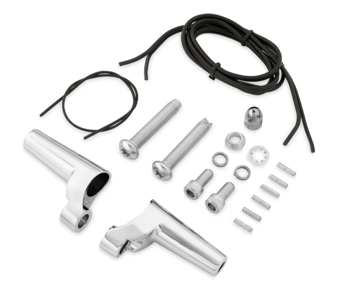 - This kit includes the required hardware and wiring to move the front directional from the handlebar to the lower triple clamp