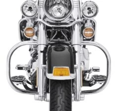 - The one-piece engine guard is designed to complement the lines of the motorcycle, and the bright chrome finish adds the perfect finishing touch
