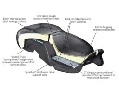 Stay in the saddle all day. The Harley® Hammock Bucket Seat features in integrated suspension system that protects the rider and passenger’s tailbone from harsh road impacts.