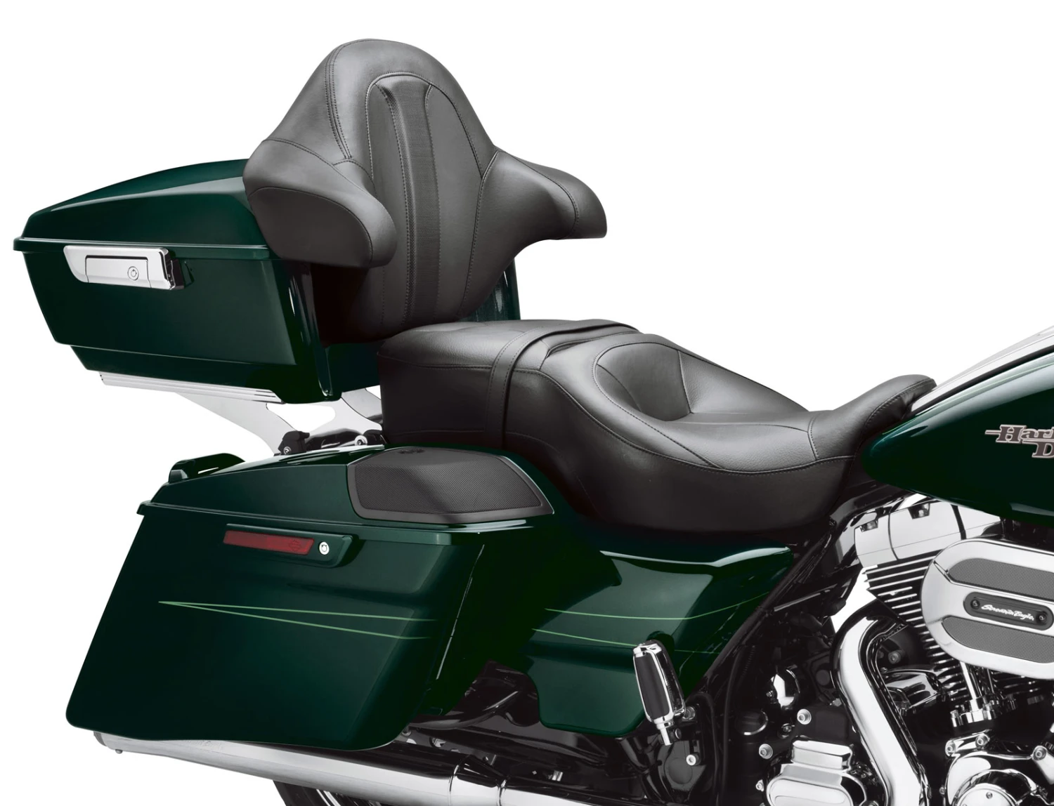 Fits Harley-Davidson ’14-later Touring and Tri Glide models. Separate purchase of Electrical Harness Extension P/N 69200722 is required. Can be equipped with Rider Backrest (sold separately) on most models.
