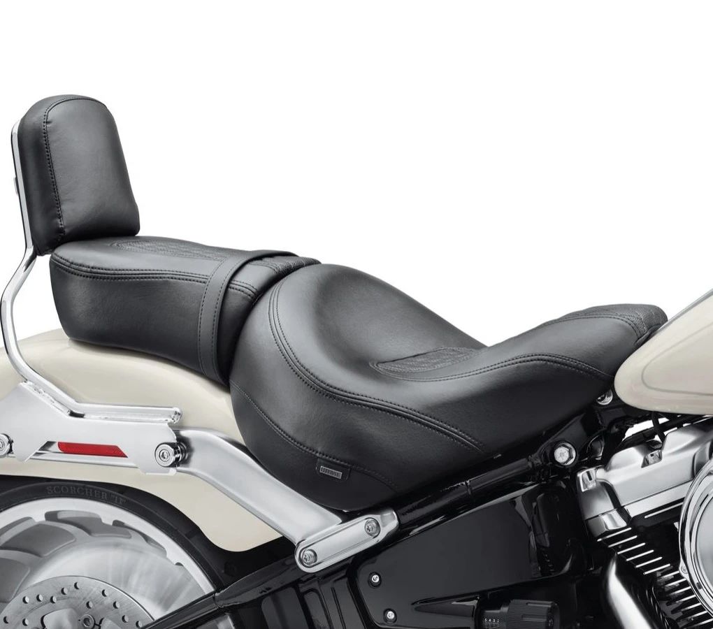 Stay in the saddle all day. These Harley® Hammock seats feature broad seating surfaces and a shallow bucket shape to distribute the weight and reduce pressure points. Beneath the two inches of traditional dual-density foam, the rider’s weight is supported by a revolutionary fabric suspension system.