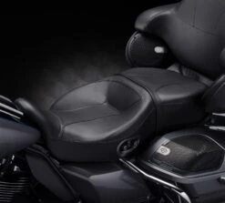 Extend and optimize your riding season thanks to cooling and heating technology built into this premium seat for Touring and Trike models. The electronic heating/cooling system is self-contained within the seat. The seat can be easily removed after unplugging a single cord. This seat offers industry-leading cooling performance, and the heating function has been improved to reach its selected temperature twice as fast as previous heated seats. The Hammock seat is our most-premium touring seat design, created for the rider who wants the ultimate in long-haul comfort. For the rider it features a sling-like fabric suspension system that acts like a hammock, providing two inches of suspension above the seat pan, topped with an additional two inches of traditional foam cushioning. This internal suspension prevents bottoming out and provides an improvement in comfort and endurance by isolating the rider from harsh road conditions. The passenger position features a multiple spring-board style suspension system along with two inches of traditional foam. This seat really improves comfort and reduces fatigue on long rides.