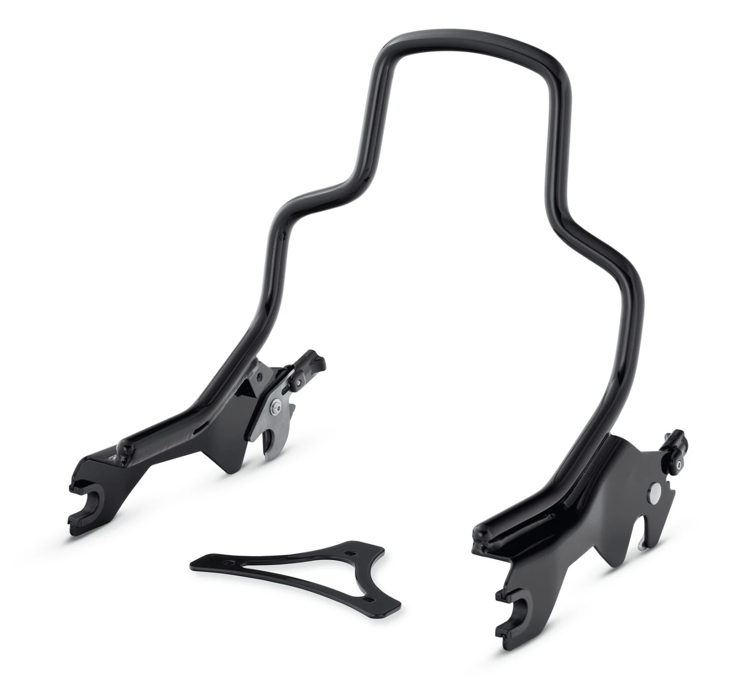 A sissy bar and passenger backrest pad is the starting point for building a complete touring machine. The backrest adds long-range comfort and support and provides a feeling of confidence and control for the passenger. HoldFast One-Piece Uprights feature an exclusive latch system that permits the backrest to be installed or removed in seconds to add versatility to your ride. The HoldFast sissy bar upright simply slips into position on the docking points, and the fingertip latches are clicked into position for a positive lock.