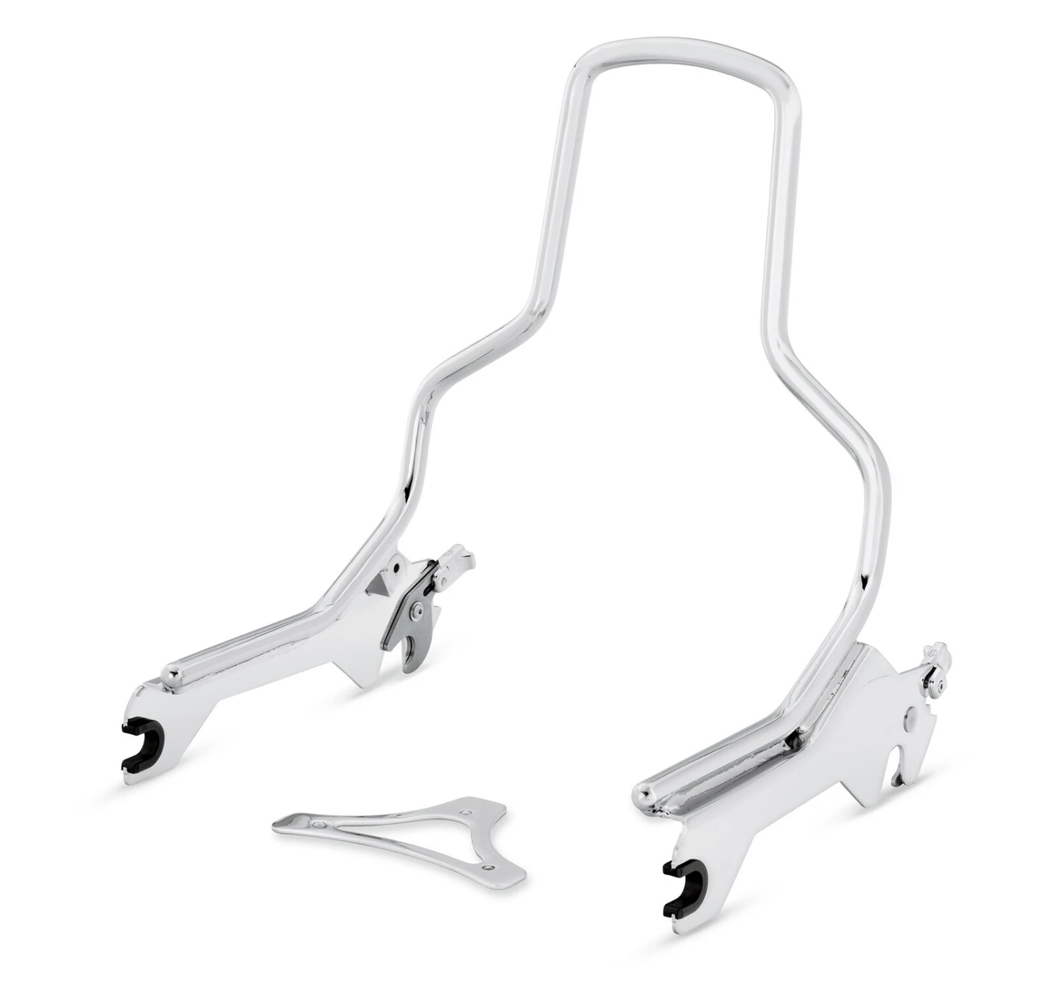 A sissy bar and passenger backrest pad is the starting point for building a complete touring machine. The backrest adds long-range comfort and support and provides a feeling of confidence and control for the passenger. HoldFast One-Piece Uprights feature an exclusive latch system that permits the backrest to be installed or removed in seconds to add versatility to your ride. The HoldFast sissy bar upright simply slips into position on the docking points, and the fingertip latches are clicked into position for a positive lock.