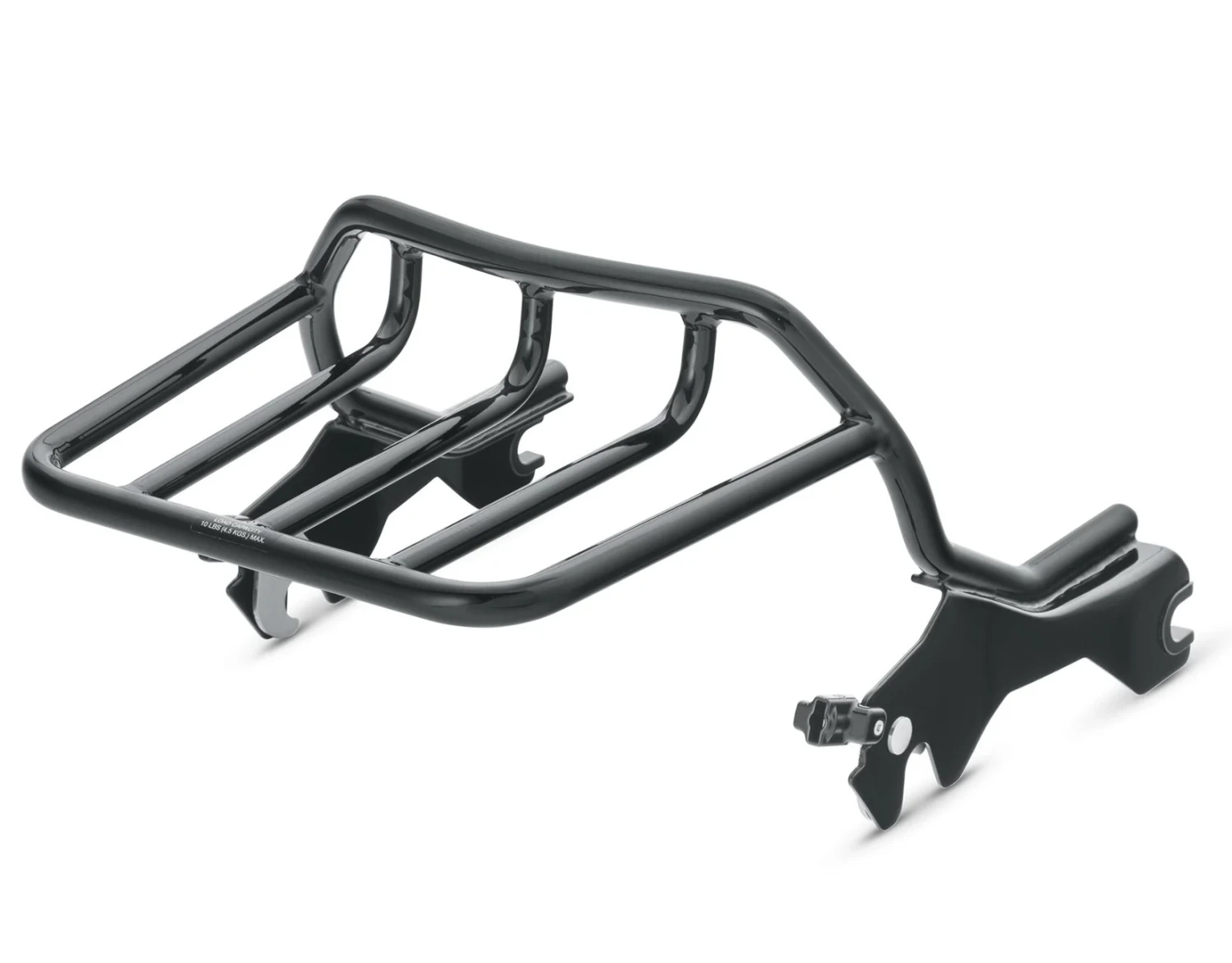 Low-profile styling defines the look of this Two-Up Luggage Rack. Designed to be installed without a sissy bar, this rack is ideal for carrying everything you need on your daily commute. These HoldFast Luggage Racks feature an exclusive latch system that permits the rack to be installed or removed in seconds, adding versatility to your ride.