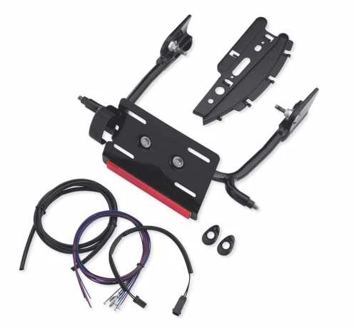 Fits Harley-Davidson ’07-later XL883N, XL1200N, XL1200V and XL1200X models with side-mounted license plate and equipped with XL Saddlebag Kit P/N 53050-10, 88358-10 or 90342-04A.