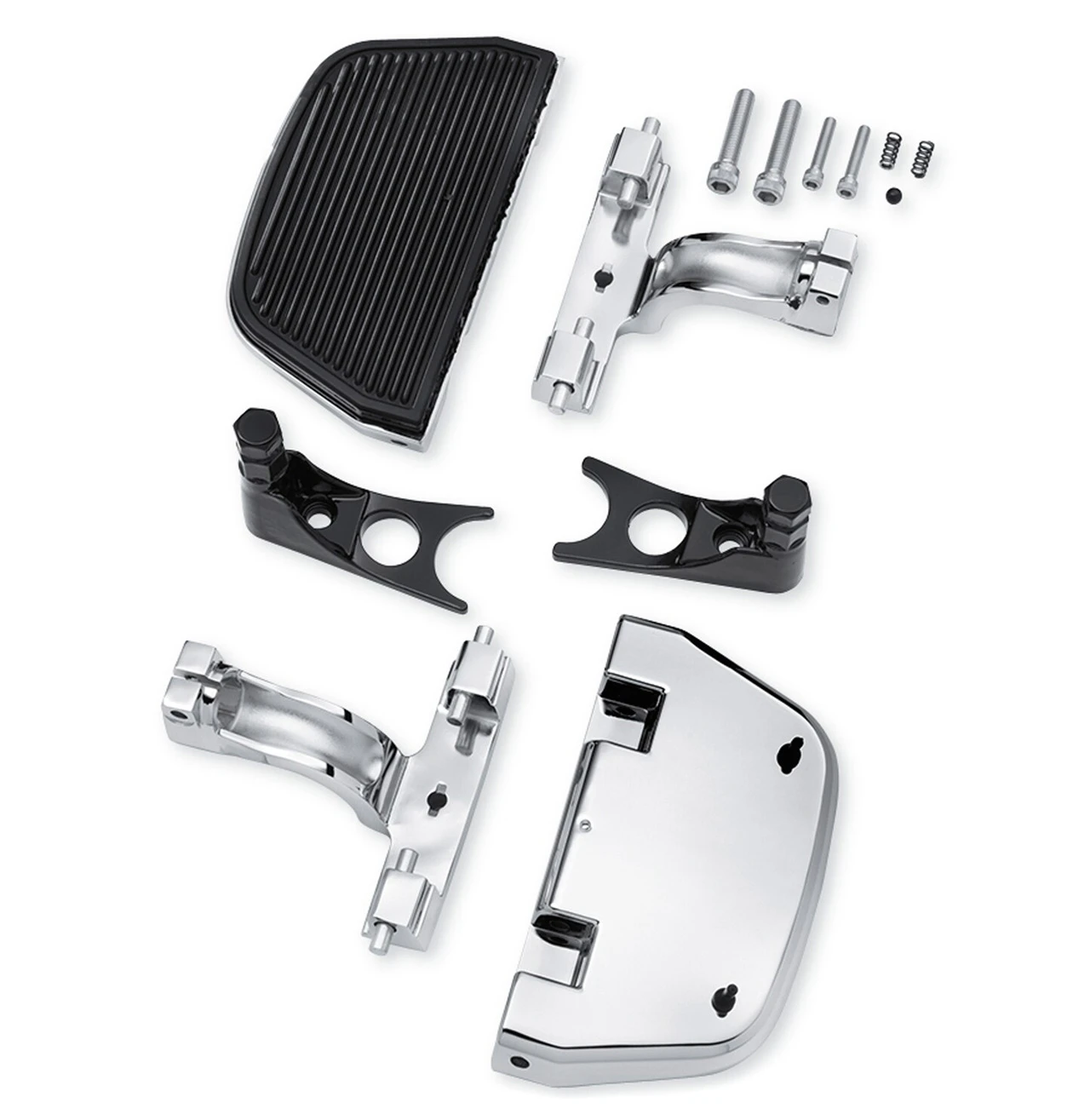 - Available in your choice of Original Equipment black or mirror- chrome finish, these kits include footboard pans, rubber pads, mounting hardware and matching chrome or black footboard supports