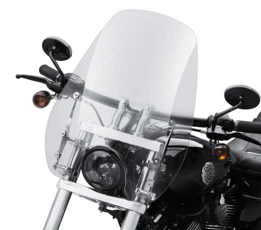 Reduces the pounding wind and shower of bugs, but keeps the wind-in-the-hair feeling. Ideal for a cool morning ride, the sleek profile of the Super Sport Windshield hugs the front headlamp for a sporty look.