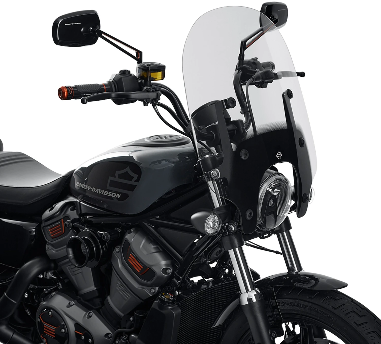 Wind deflection with sporty style. This detachable windshield is designed specifically for the Nightster® model and can be quickly and easily installed for added highway protection or removed for desired style and protection.