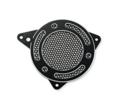 - Features a gloss black finish with machined, longitudinal strakes to provide visual length to the powertrain