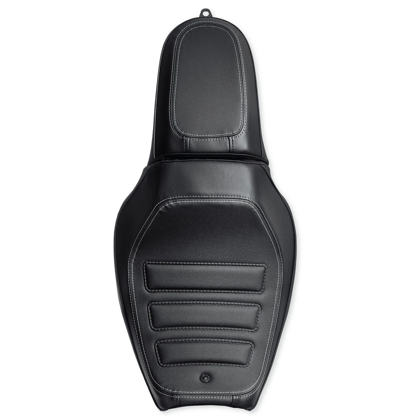 Designed to position riders with a shorter inseam closer to the ground, Two-Up Reach® Seats are shaped to place the rider in a comfortable and confident relationship to the hand and foot controls. The wide seating surface provides loads of support and the narrow tapered nose brings the riders legs together for an easier reach to the ground at a stop. These Two-Up Reach Seats feature a stepped profile that keeps the rider from sliding rearward during acceleration, and a generous raised passenger position that cradles the tailbone for hours of riding comfort.