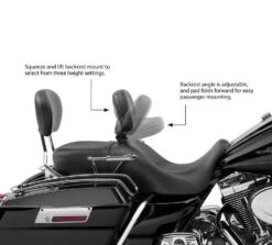 - Contoured backrest pad is shaped to provide full lower back support without pushing the rider forward, and the slim profile offers the passenger a few more inches of room