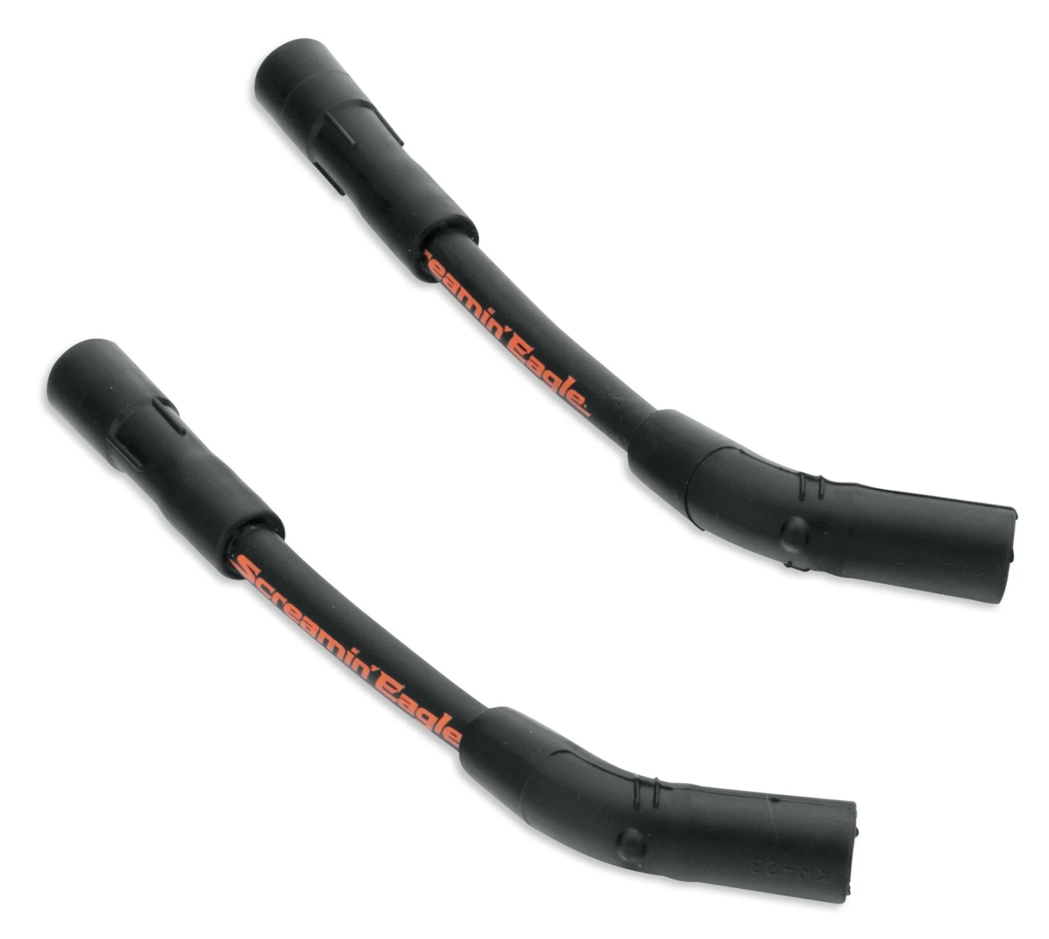Fat 10mm plug wires add dimension and style to your ride. Screamin‘ Eagle boot design and suppression core wires ensure solid connection and maximum voltage transfer between coil and plugs. „Screamin‘ Eagle“ logo printed along wire to add style.