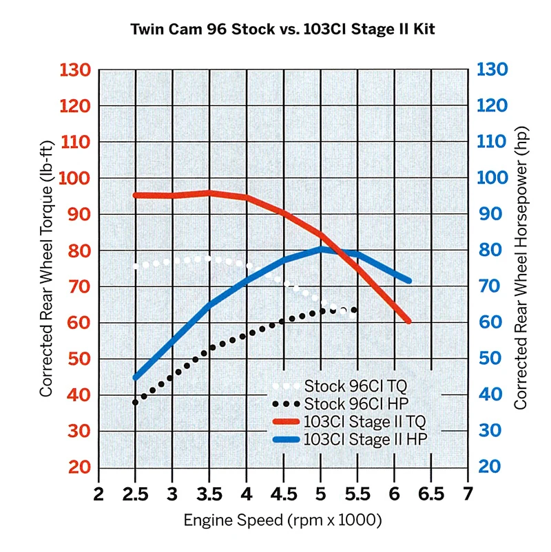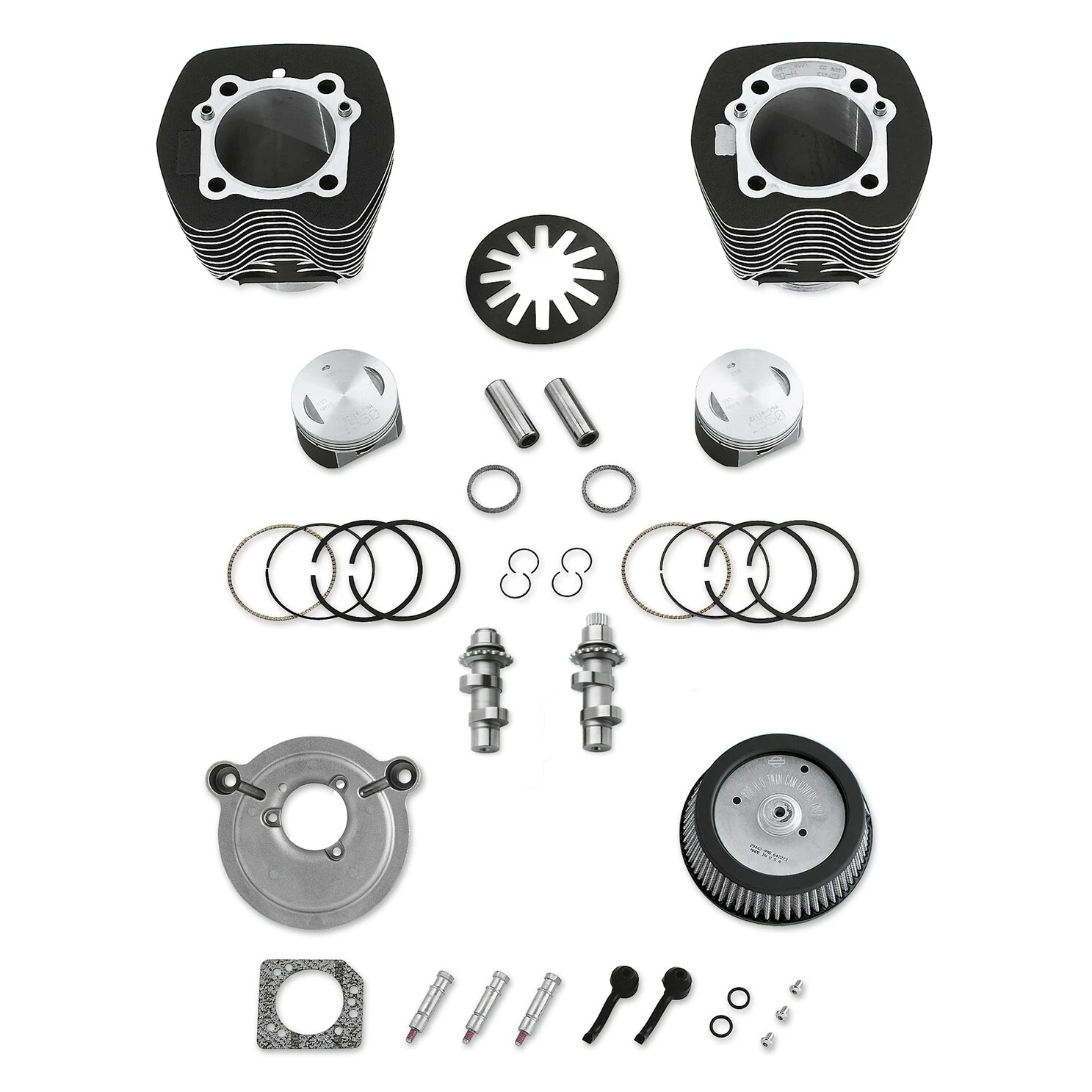 - The kit increases the displacement of your Twin Cam-equipped model from 96 cubic inches (1584cc) to 103 cubic inches (1690cc). Includes Stage II (SE-255) cams, Big Bore cylinders, Big Bore flat top pistons, rings, pins, clips, and a Stage I Air Cleaner Kit with one-piece back plate, integral breathers, all mounting hardware, and gaskets