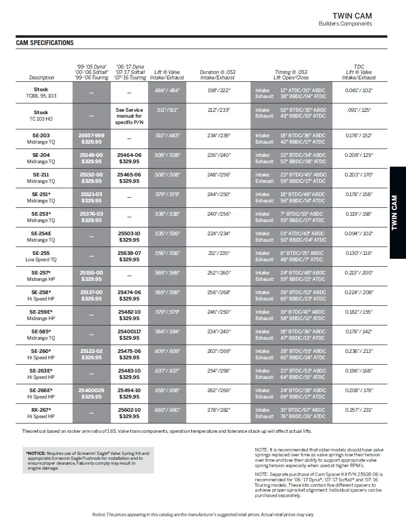 This camshaft works great with 103″ and larger engines with free-flowing intake and exhaust. This bolt-in camshaft works well with stock heads and highcompression pistons. It increases midrange torque and top-end power.