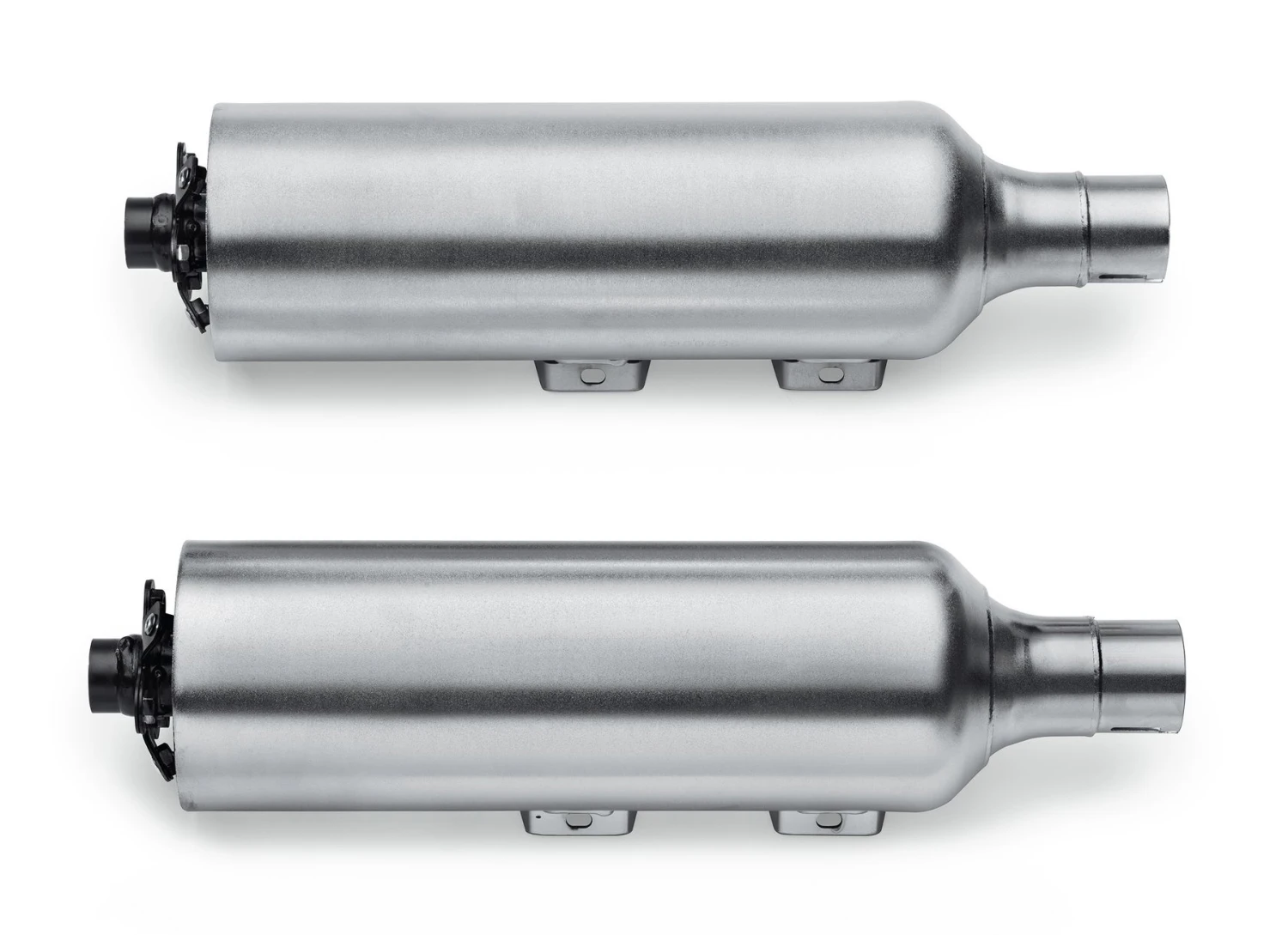 These 4.5″ street compliant high-flow mufflers have been specifically tuned to deliver an aggressive exhaust note and improved performance. The straight-through perforated baffle reduces airflow restriction, and produces a rich exhaust note throughout the entire RPM range. You get a great performance, a powerful base rumble and a throaty tone while on the throttle, while maintaining a mellow note while cruising. Available in your choice of Brushed Satin Chrome or heat resistant Satin Black ceramic finish. Matching or contrasting end caps (sold separately) complete the custom look. Designed for International markets that require ECE certified mufflers. Fits ’18-later FXFB and FXFBS models. Installation requires separate purchase of Muffler End Caps P/N 65100122 or 65100123.