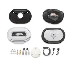 - This easy-to-install kit includes low-profile air cleaner cover, high-flow filter element, back plate, Screamin‘ Eagle badge, protective rain sock, and all required installation hardware