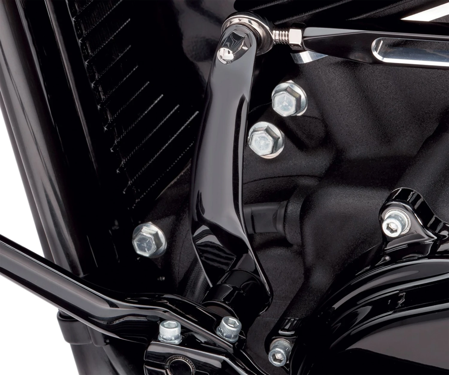 This shift rod lever replaces the Original Equipment or Accessory chrome lever to create a cohesive, black-out look across your bike.