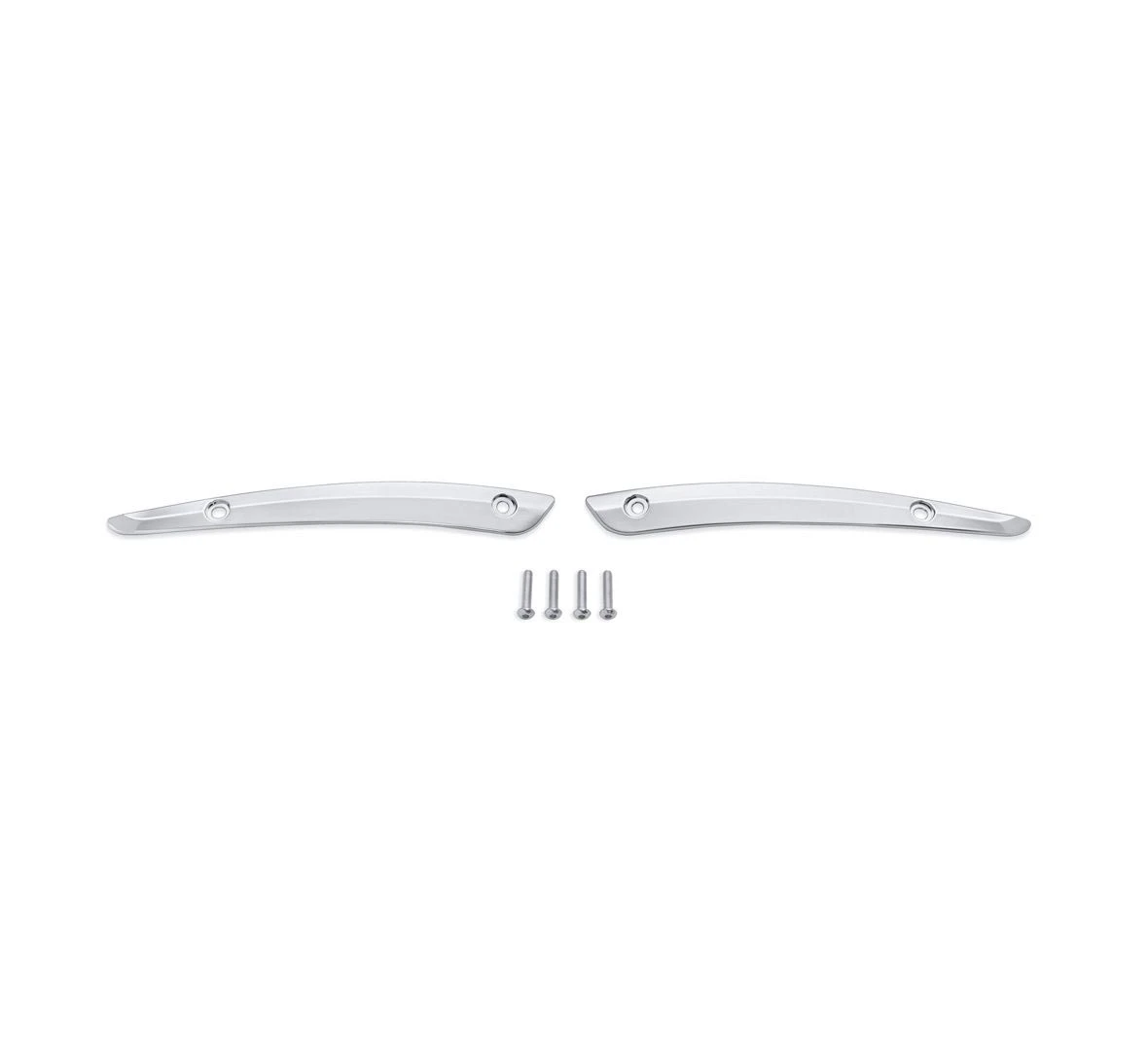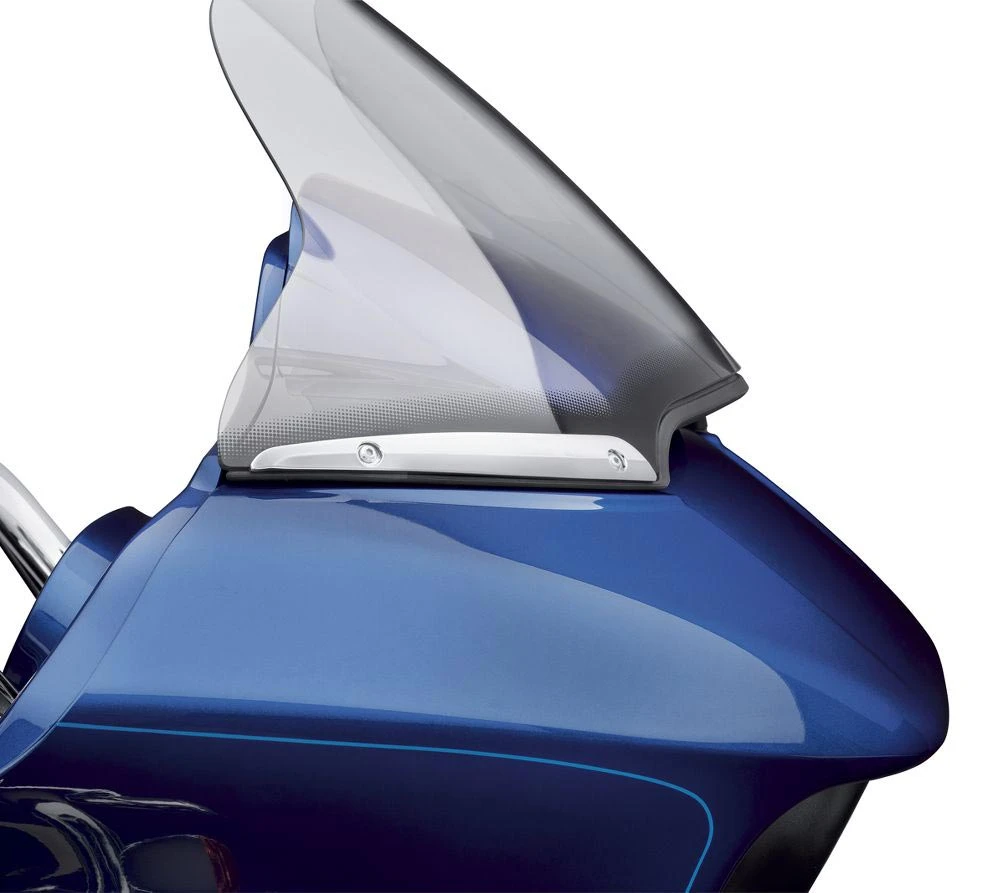 Stock on the MY 2015 CVO Road Glide, this easy to install, 2 piece trim kit adds a speedy looking splash of chrome to the bottom of the windshield.