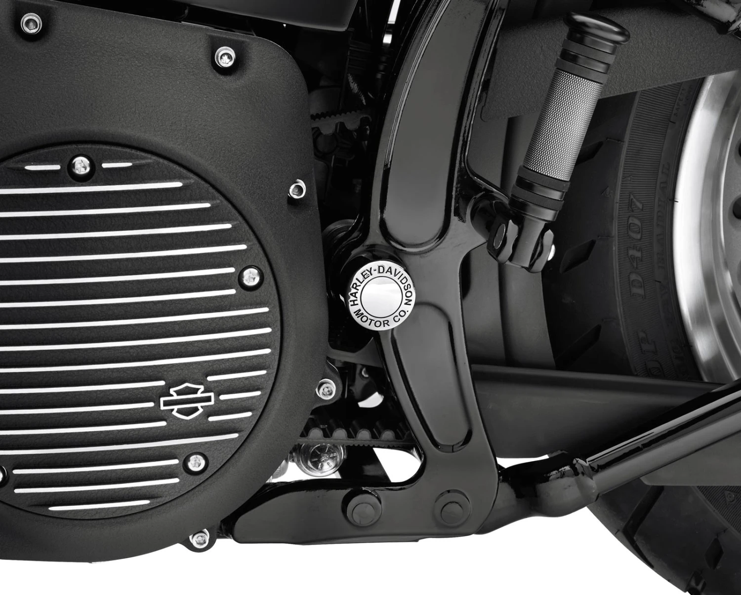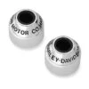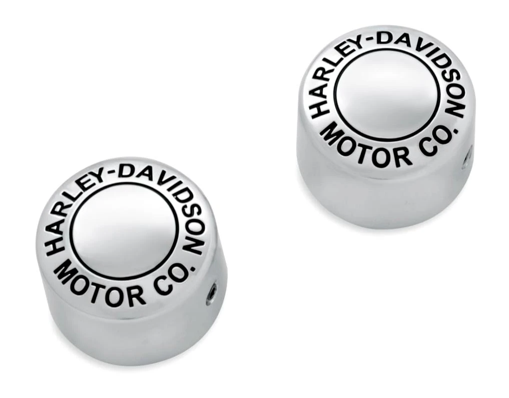 Die-cast, chrome-plated with black „Harley-Davidson Motor Co.“ logo.