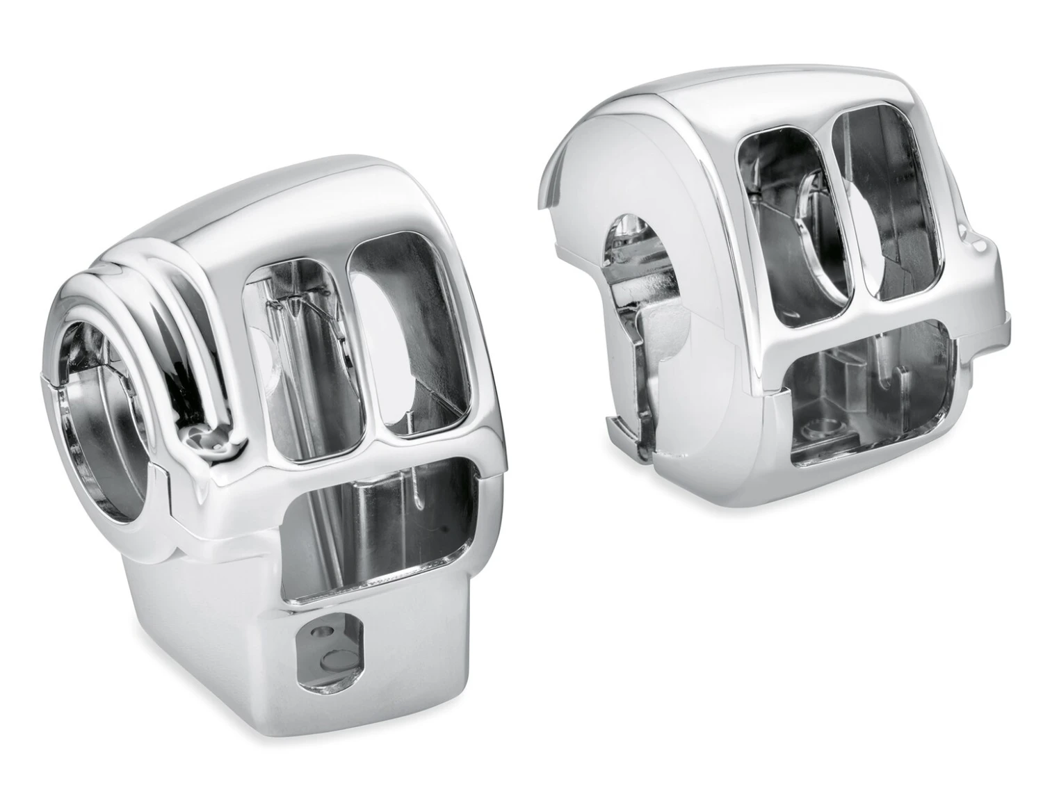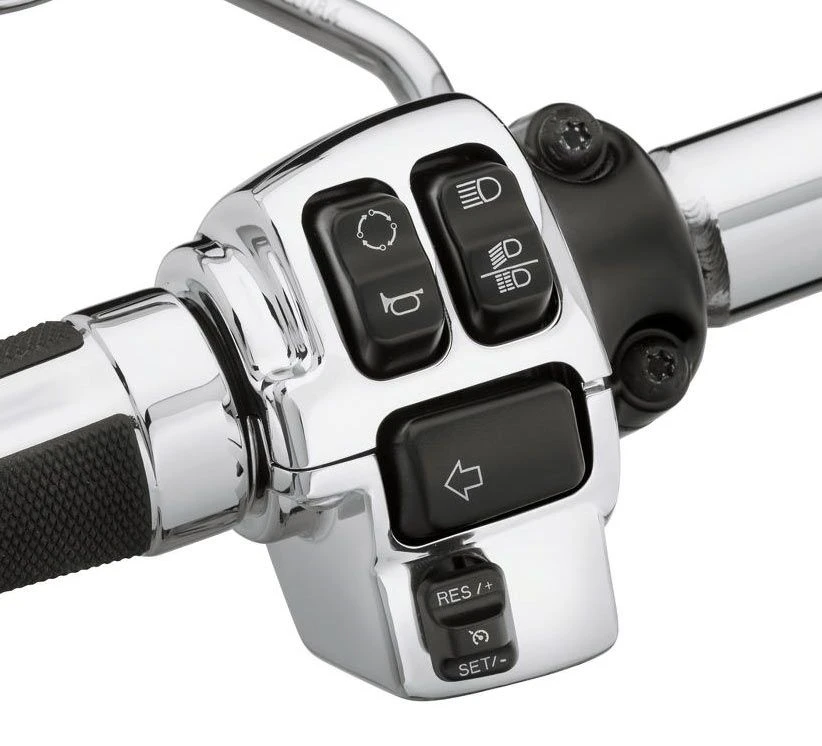 Fits Harley-Davidson ’16-later Softail models equipped with Cruise Control. Replaces Original Equipment housings. No switches or wiring required.