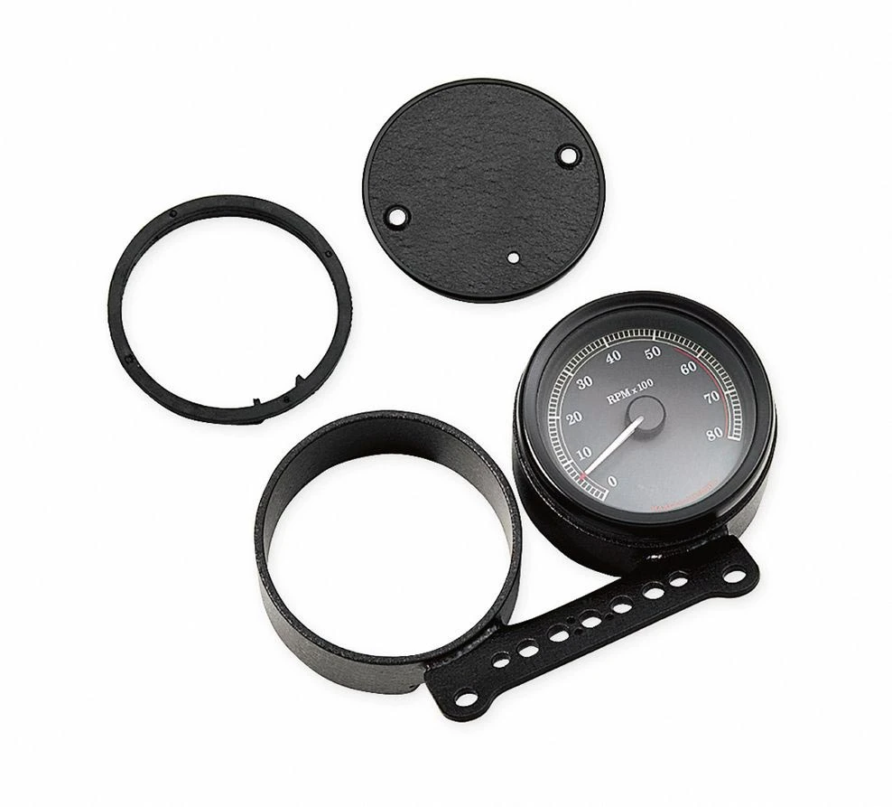 - The kit includes an electronic tachometer, wrinkle-black dual gauge mounting bracket, and hardware required for installation