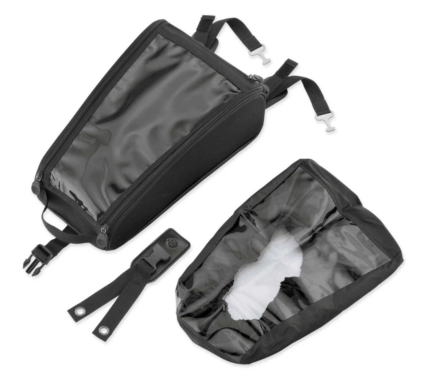 - The bag features a clear top pouch for at-a-glance viewing of maps and directions