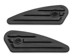 These self-adhesive rubber knee pads provide a touch of old school style. The rich black rubber pads feature tapered ribs and a raised Bar & Shield logo to protect the surfaces where your legs contact the tank.