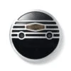 - Brass-colored medallion inspired by a classic Harley-Davidson tank emblem for retro style with a modern twist