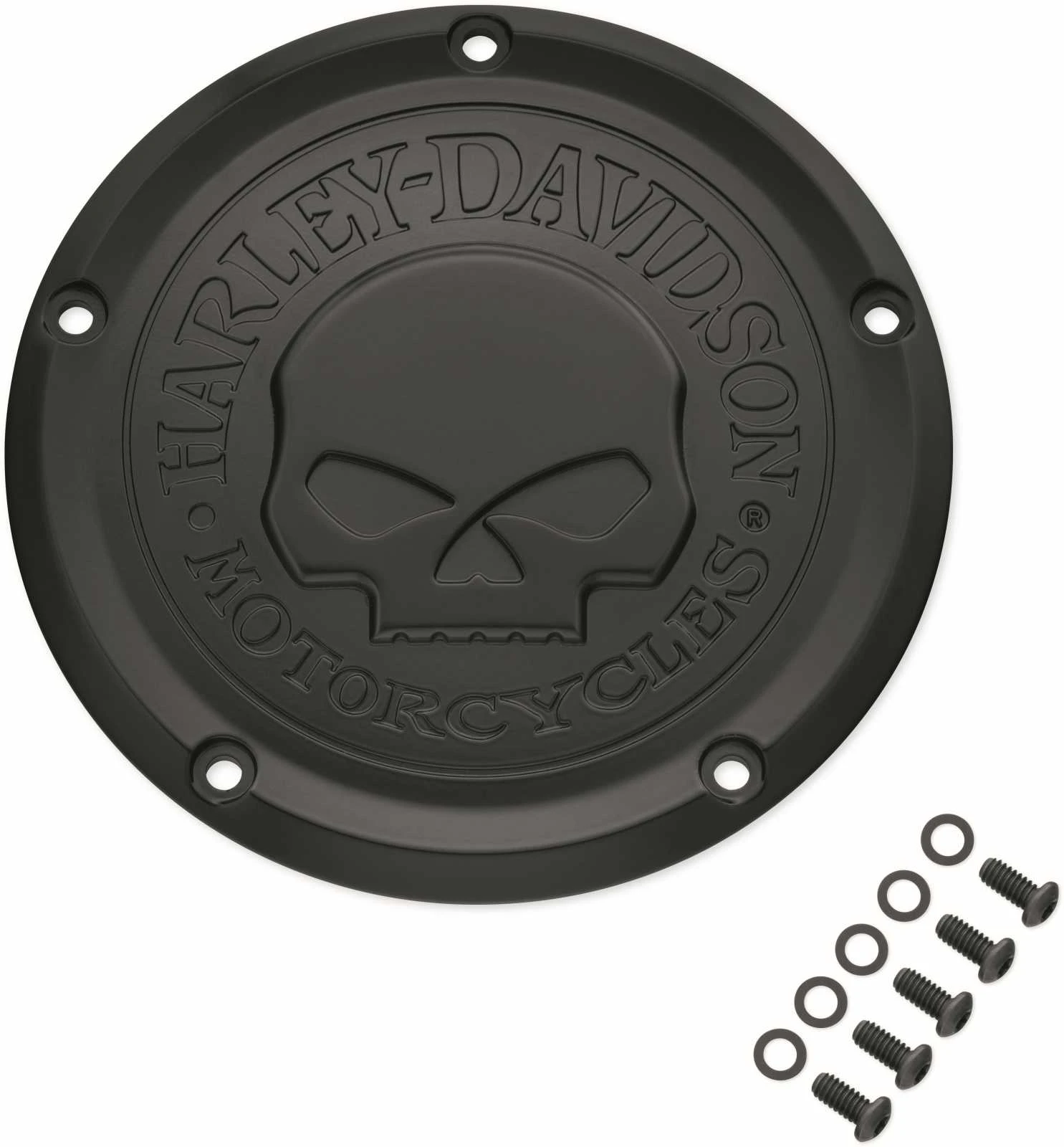 Penned at the hand of Willie G®, the famous Skull Collection makes a shift to the dark side. Completely drenched in black, the raised skull and surrounding Harley-Davidson® Motorcycle script adds a subtle ominous touch to your ride.