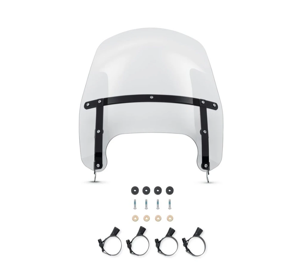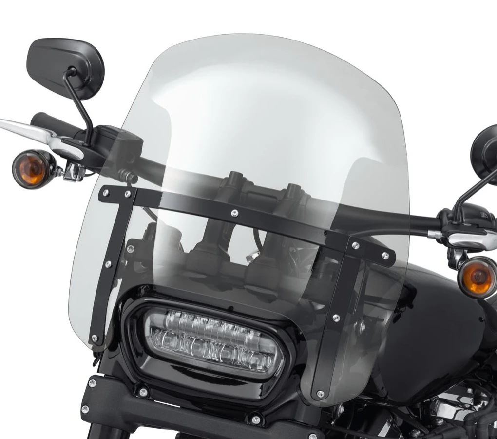- Compact windshield minimizes air infiltration and manages airflow around the rider and passenger