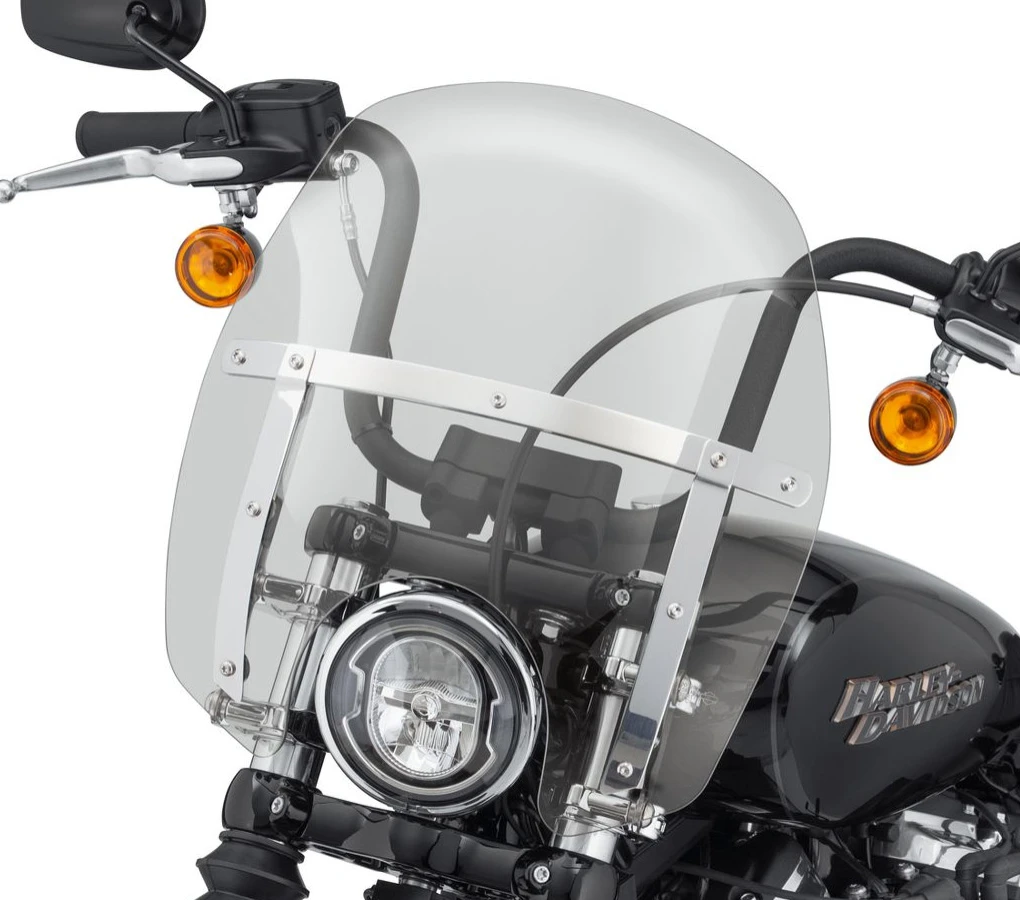 Engineered to provide the riding comfort of a larger windshield, this Wind Splitter Windshield features a contemporary contour that sets it apart from the crowd. The compact shape is designed to keep the windshield below your line of sight so you dont need to look through bugs and road grime, while the flipped upper edge manages airflow and turbulence across the top of the shield. The flip adds additional wind shear lift to provide the protection of a taller wind screen.