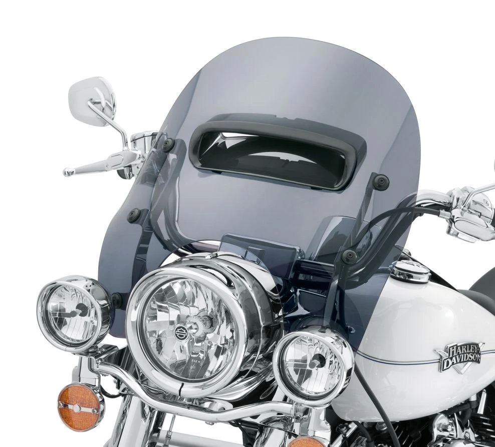 - The Harley-Davidson Windsplitter Vented Windshield features an exclusive fingertip-adjustable center vent that reduces turbulence behind the windscreen